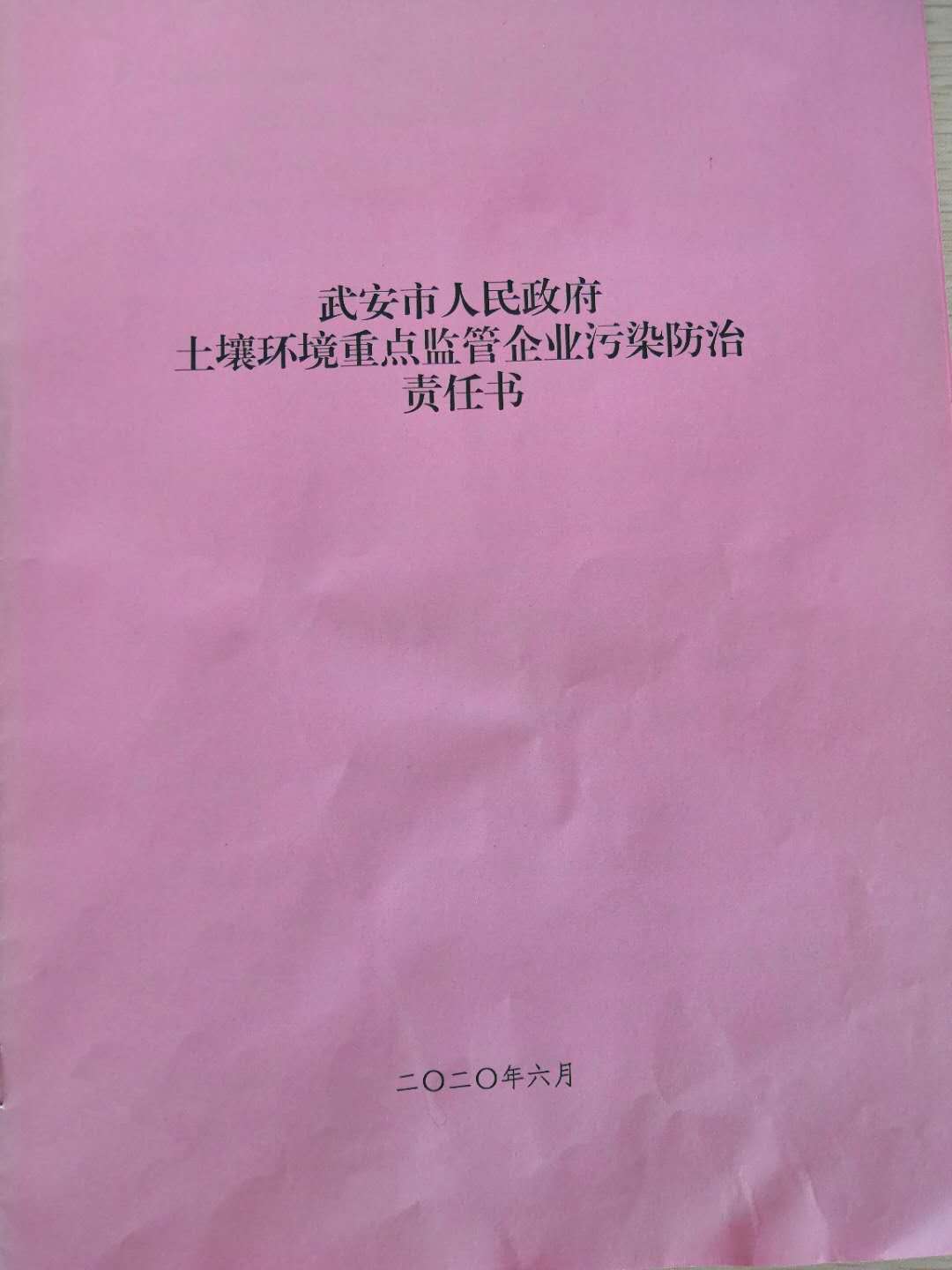 武安市人民政府土壤環境重點監管企業污染防治責任書